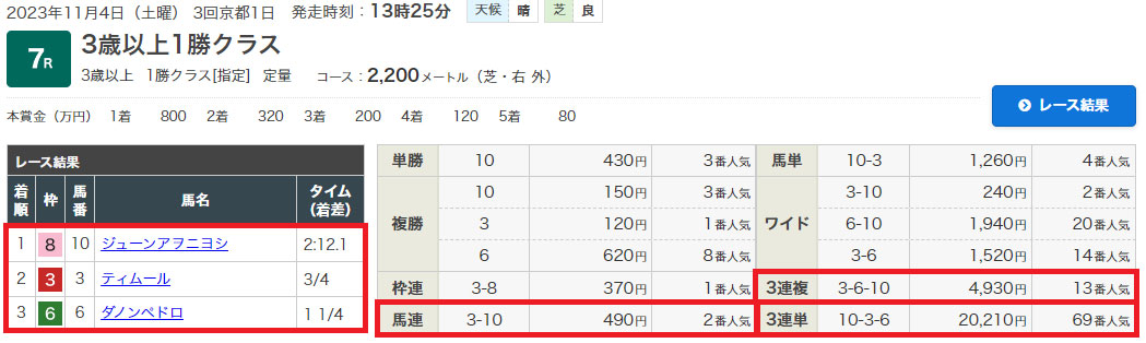 馬連に関しては100円トリガミでしたが、3連単で202.1倍的中したので許容範囲。