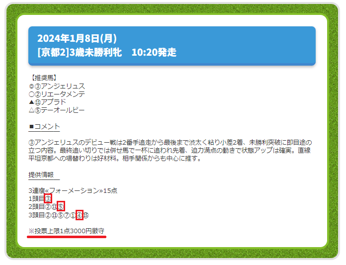 8月(月)成人の日に朝一から京都2Rで無料情報的中で23万7900円獲得!