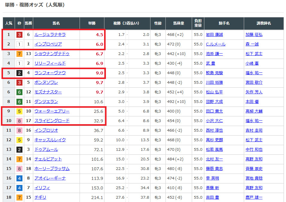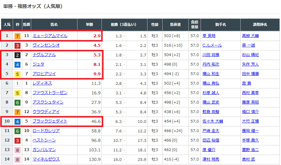 上位人気中心ではありますが1つでもワイドが当たるよう期待したいと思います!