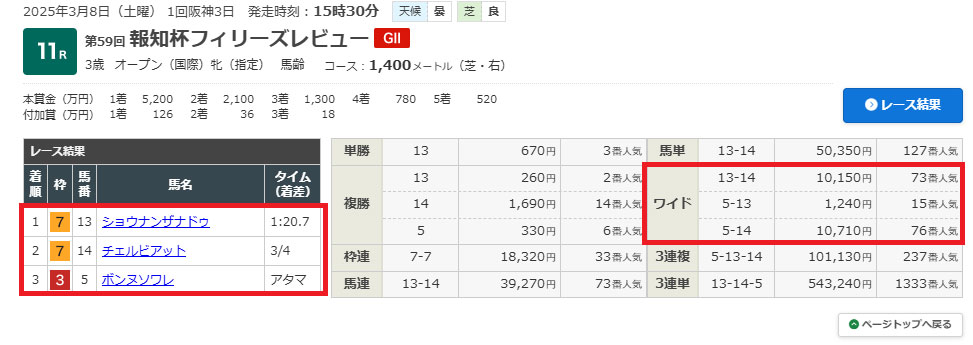 阪神競馬場11Rフィリーズレビュー(G2)の予想になります。