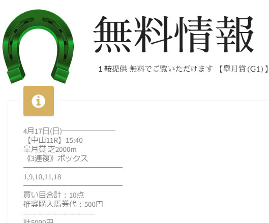 本命馬に絶対の自信あるからこそ出来る複勝勝負であり予想内容にも安定感と確実性が見て取れた!優良サイトとして問題ないだろう!