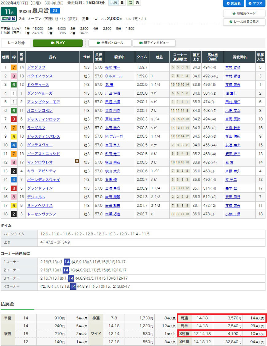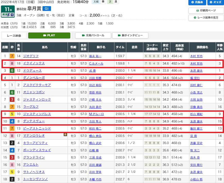 【検証レース:4/17 中山11R GⅠ 皐月賞】