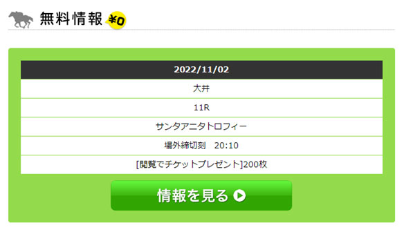 まず、的中競馬ステーションは地方競馬と中央競馬どちらも無料情報を出しています。