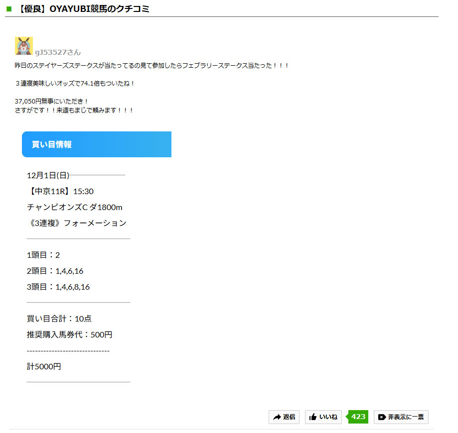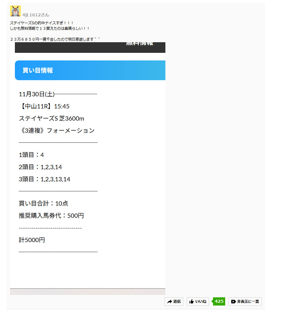 ここは無料情報もですが有料情報もさすがの成績を残しています。