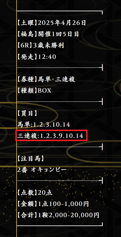 4月26日の福島中央競馬の6Rの無料予想
