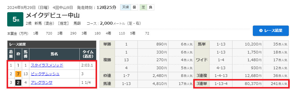 3連複よりいい金額を当てることが出来て気分がいいですね。