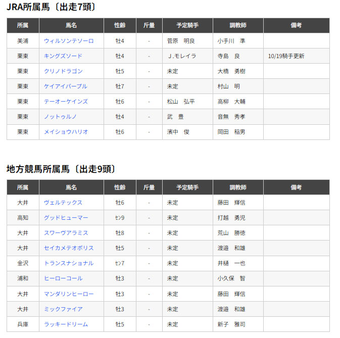 JBCクラシックの出走予定馬を見てもG1馬勢ぞろいでめちゃくちゃ豪華です。