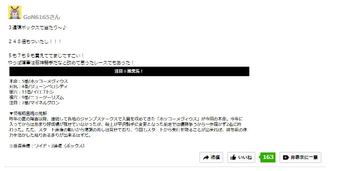 先週の荒れた東京ハイジャンプ(JG2)を見事的中させることができたようです。