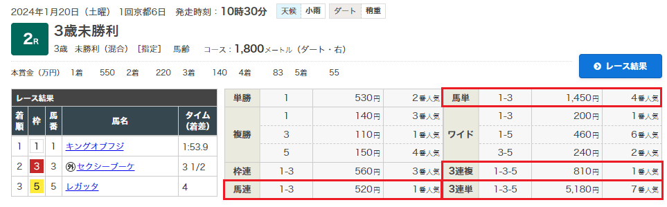 13日(土)京都2Rで無料情報「4馬券種的中」7万9600円獲得!