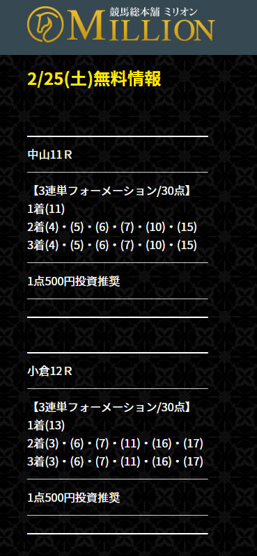 今回は【競馬総本舗ミリオン】というサイトを初検証したいと思います!