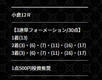 こちらも推奨通り1点500円ずつ合計15,000円の馬券を購入。