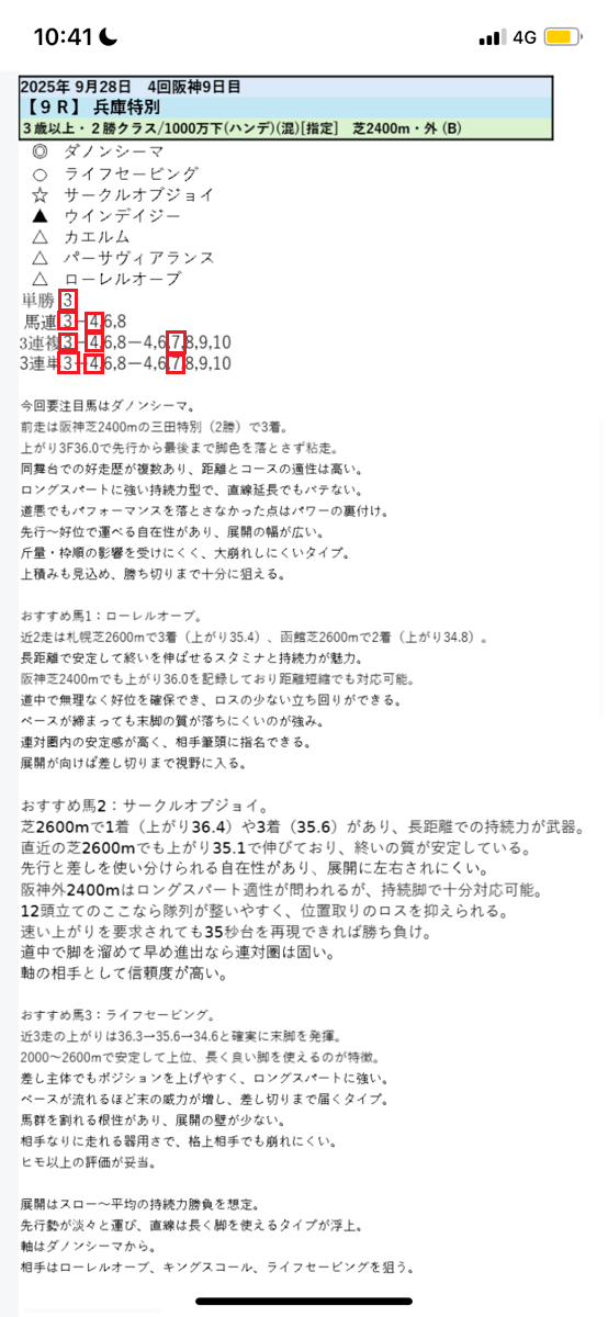 28日(日)公開された阪神9R兵庫特別(ハンデ戦)2着7人気の伏兵馬の好走を見抜いて総額8万5200円獲得!