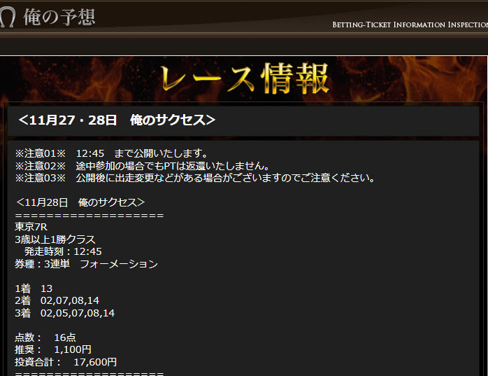 今回検証したのは俺の競馬という予想サイトの「有料情報」検証となります。