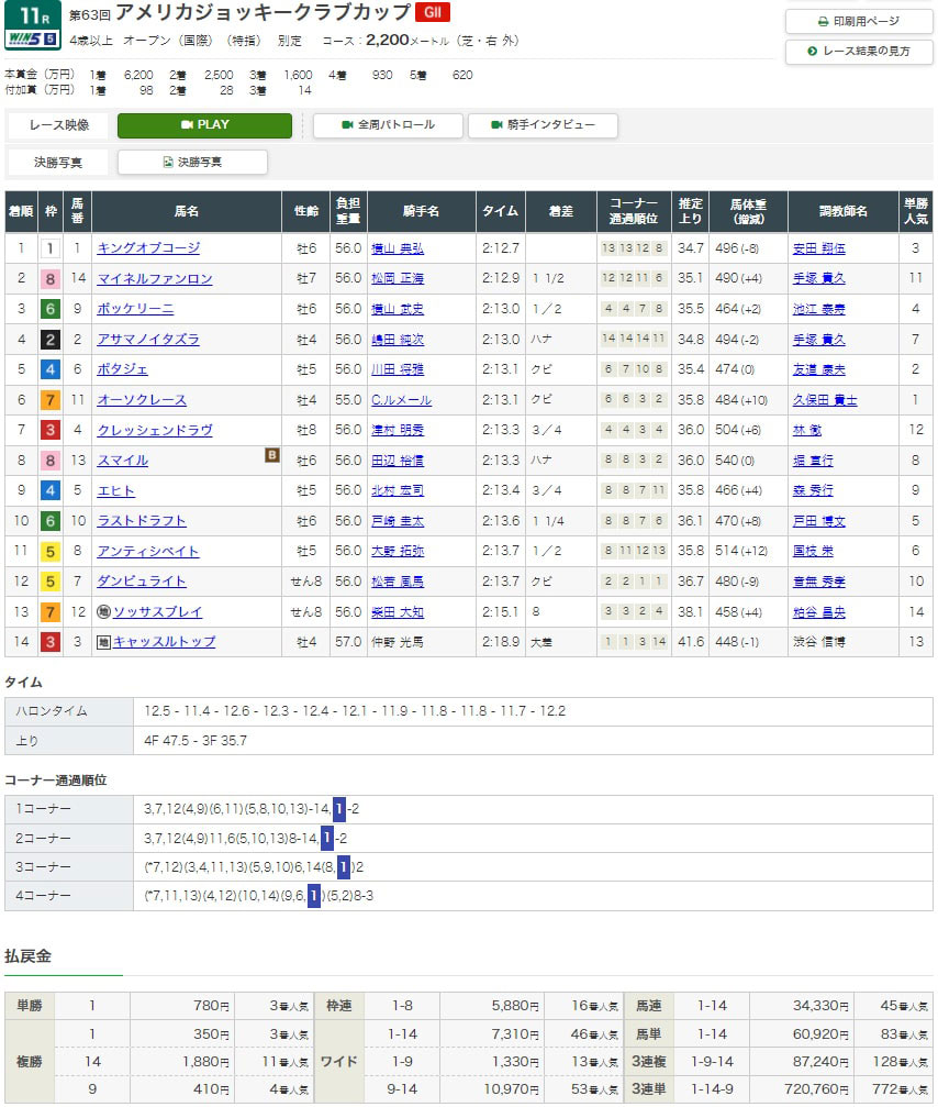 注目度の高い重賞のアメリカジョッキークラブカップが無料情報となっていたので検証してみる!