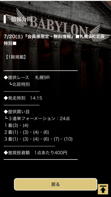 まずは土曜日に公開された買い目から見ていきたいと思います。