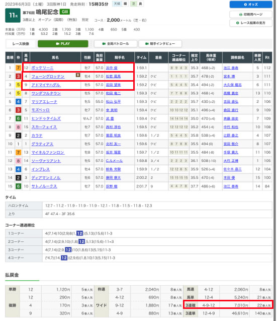 穴党の馬券なので当たったら配当が大きいことを期待しつつ結果を見ていきましょう。