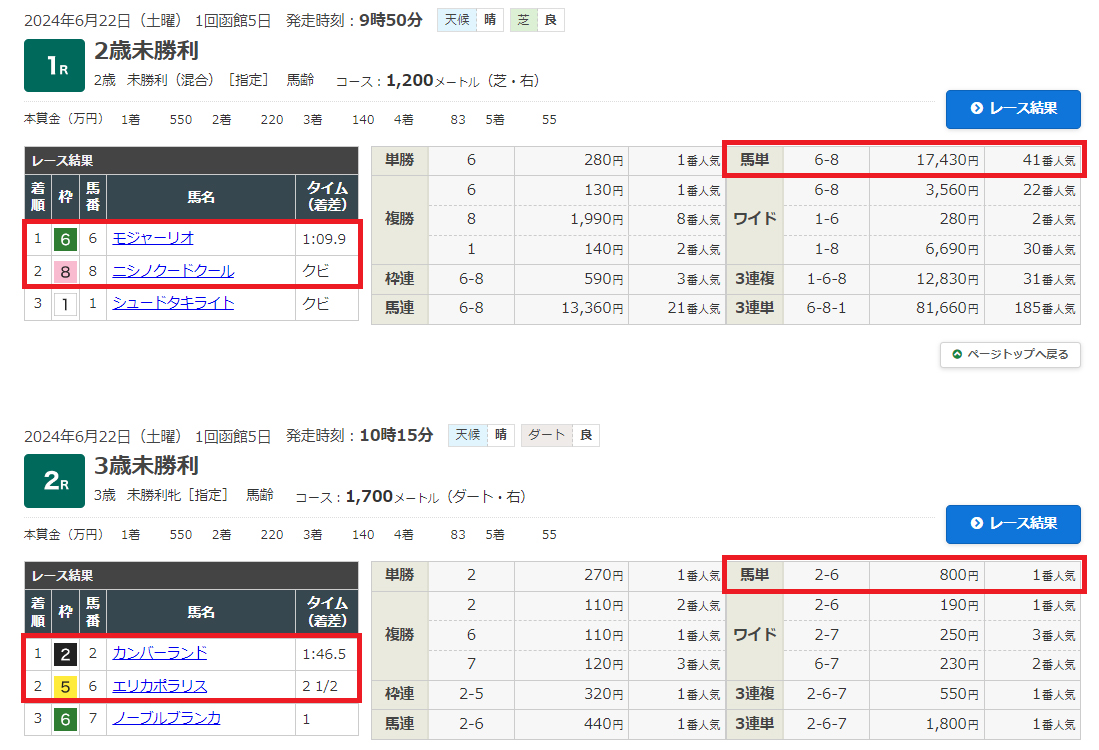 続く函館2Rは2―6で不的中!