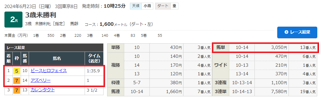 まずは東京2Rの結果から見ていきたいと思います。