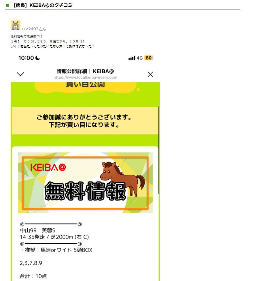 ぜひこちらから【KEIBA@】の口コミページへ飛ぶことができますので、口コミを見てご登録へ進んでください。