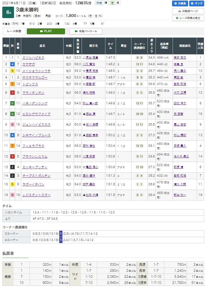 このレースでは1着となったが7頭も馬を選出しておきながら馬券に絡んだ馬がこの1番人気だけと、ガッカリする結果に…。