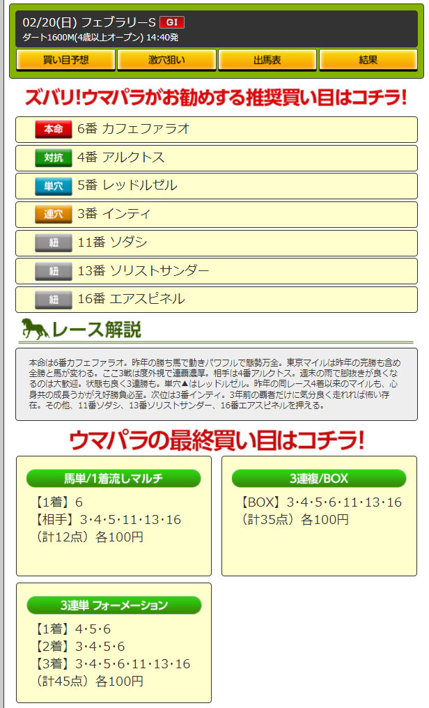 【検証レース:2/20 東京11R GⅠフェブラリーステークス】
