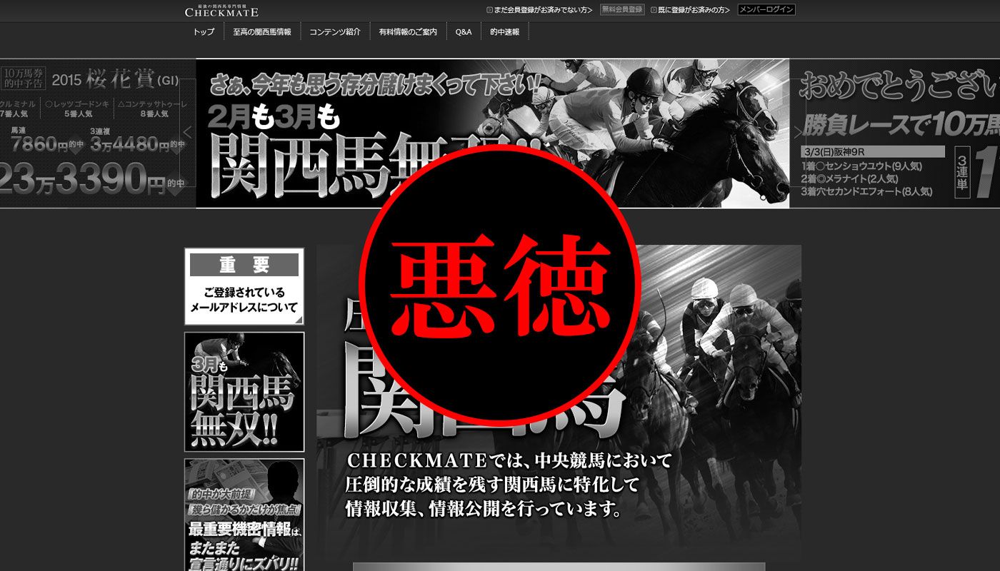 悪徳サイト認定:最強の関西馬情報 CHECK MATE