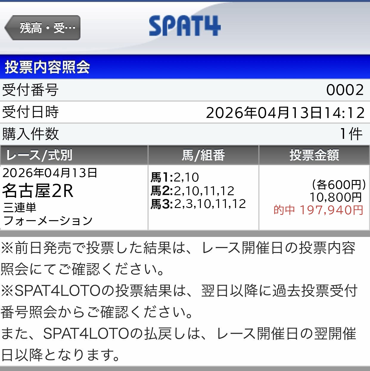 福島開幕週痺れました…!! 人生初が3つも同時に重なりました! 初の3連単10万馬券、初の100万越え払い戻し、初のJRA帯獲得。 142,960円当たって114万3680円獲得!! 2026年の競馬収支確定が決まりましたね!!