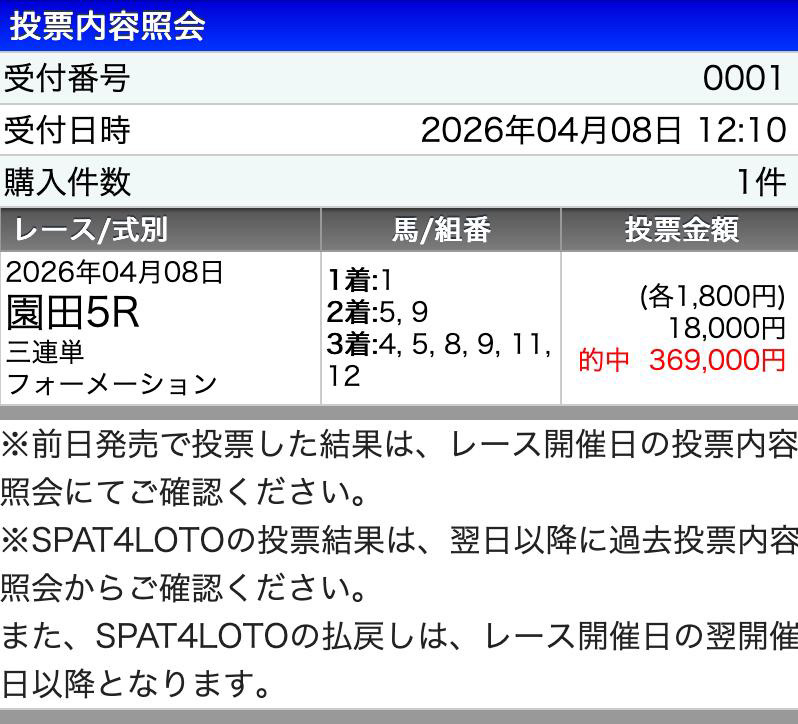 うっひょー! 先週の平日紹介されて初利用だったけど万馬券大当たり! しかも有料情報じゃなくて無料情報!!!! 推奨通り1点千円で馬券買ってたから21万9800円払戻し! 桜花賞も獲れたしこの流れはここ使えば皐月も獲れるっしょ!