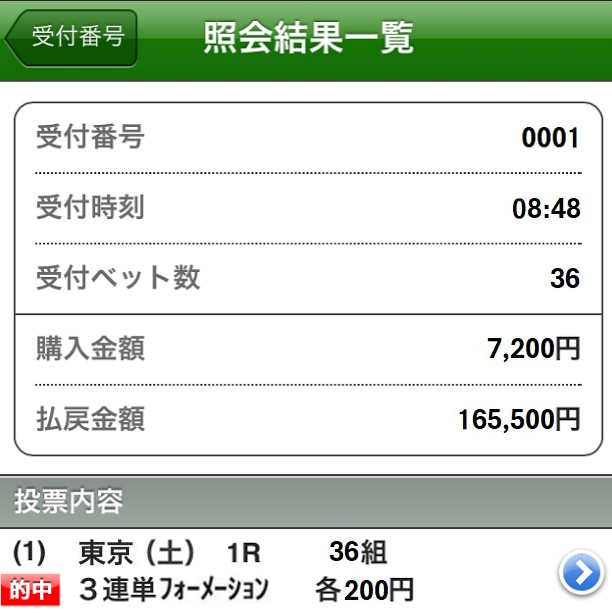 おかげで827.5倍を1点200円で的中で16万5500円払い戻し!
