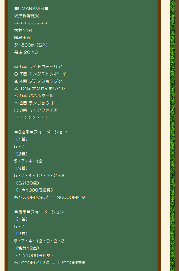 昨日の無料情報で3連単万馬券ゲット!
