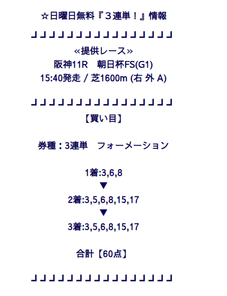 60点ってこんな予想誰が買うんだろうな 100円で買っても6000円だしな 俺はもちろんかってないっすよ