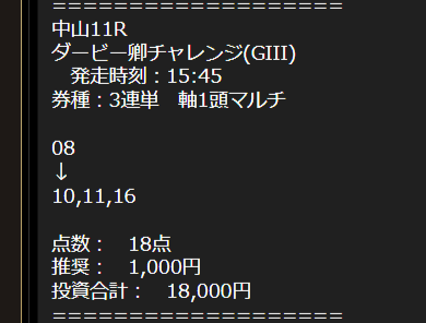 この日はずしすぎて推奨金通りに賭けられなくて1点500円になっちゃったけど