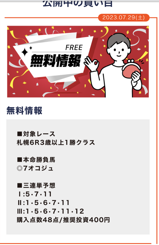 今日も無料情報不的中