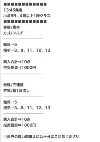 13が抜けてて万馬券取れなかったよ~( ;∀;) センスないねえ