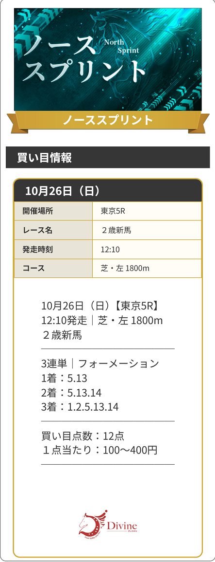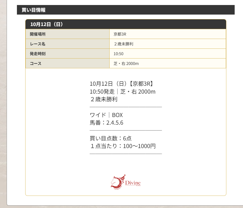 唯一の的中はディバインさんを使った予想に乗ったレースで万馬券