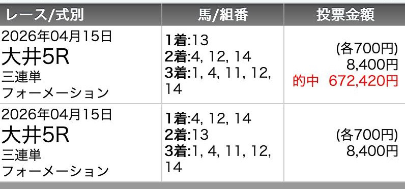 昼休み中に馬券買って、17時に仕事終わって的中してるか確認したらビックリ!!