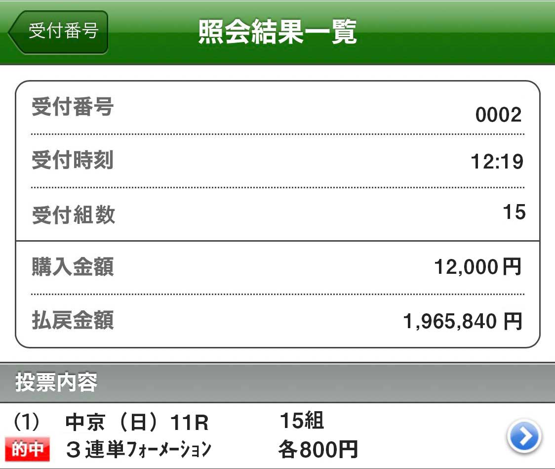 人生初の超高額払いも出し達成させてもらいました! 中井馬券師の予想は凄まじいですね! また今週も中井さん予想出すかな?