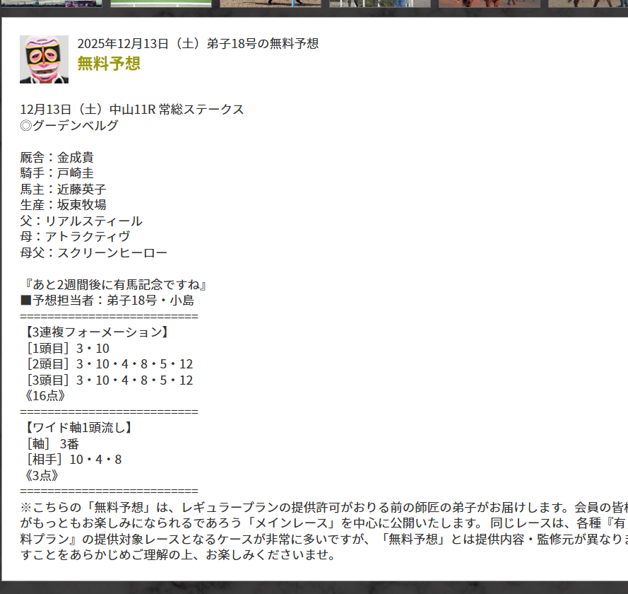 このレベルなら俺でも予想売れるw